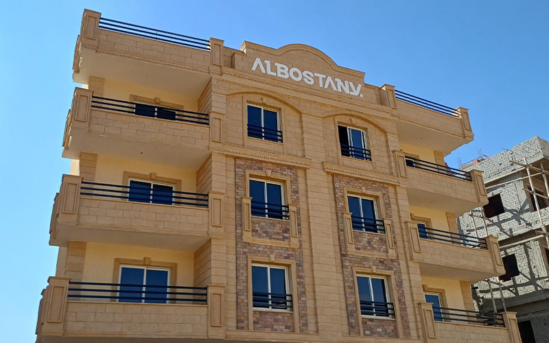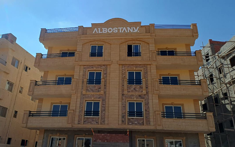 تم الانتهاء من تشطيب الواجهه الاماميه وتركيب الألوميتال وتم توريد وتركيب أبواب الشقق وتم الانتهاء من أعمال بلاط وتشطيب الرووف